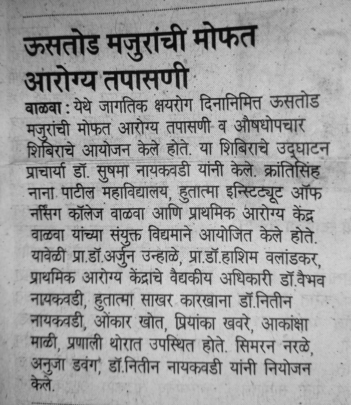 आरोग्य शिबीर बातमी